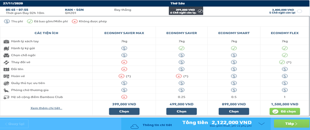 Bước 2: Chọn chuyến bay và mức giá như yêu cầu