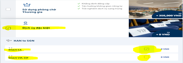 Bước 4: Chọn dịch vụ đặc biệt cho khách CA (Trong phần lựa chọn bổ sung)