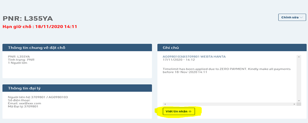 - Trường hợp CA không thực hiện thao tác này khi đặt vé, vui lòng liên hệ tổng đài với số điện thoại đã đăng ký và cung cấp mã PNR để được hỗ trợ thực hiện ghi chú.