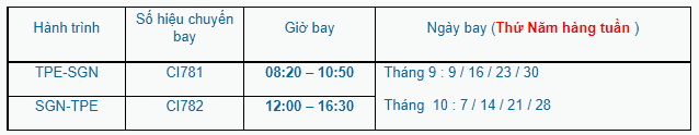 CHINA AIRLINES (CI): Thông báo Cập nhật các chuyến bay China Airlines trong tháng 9 & 10/2021