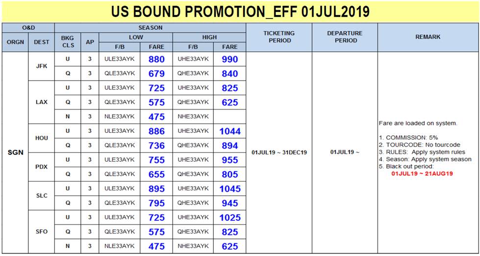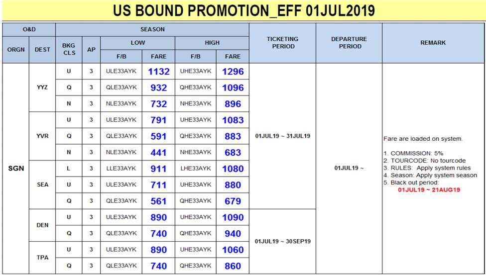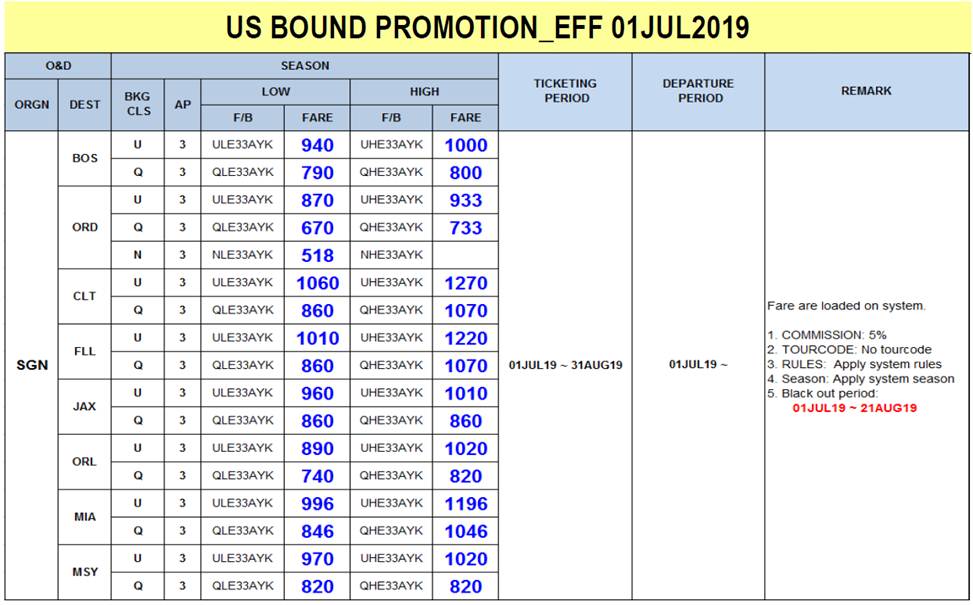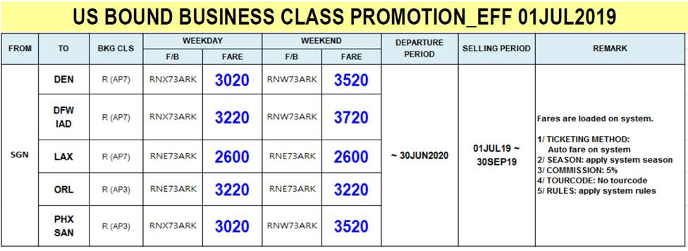Liên Lục Địa xin gửi tới Quý đại lý thông báo của Korean Air về việc Triển khai khuyến mãi mới cho tuyến đường Mỹ từ ngày 01JUL2019 với chi tiết như bên dưới.