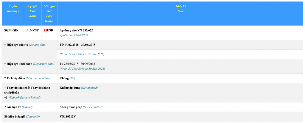 – Chi tiết Biểu giá đã được triển khai trên trang web hỗ trợ đại lý của CNMN (Details of faresheet was updated on agent-supporting website of Southern Region Branch)