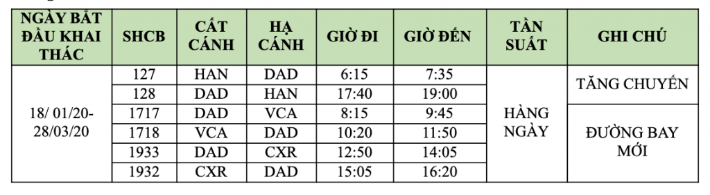 Bamboo Airways xin trân trọng thông báo lịch khai thác 02 đường bay mới từ 18/01/2020: