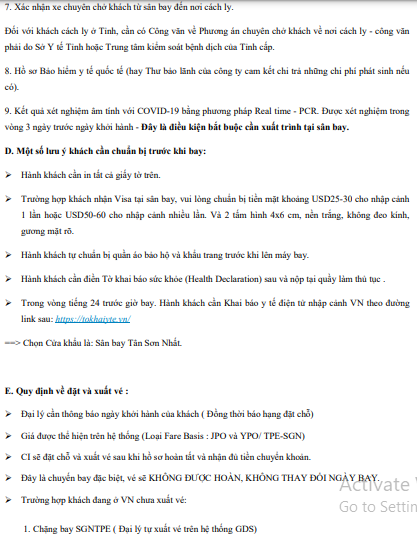 Theo thông báo của Trung tâm kiểm dịch y tế quốc tế tại TP.HCM, từ ngày 01/02/2021 Trung tâm kiểm dịch y tế quốc tế tại Tp.HCM ngưng nhận hồ sơ của đối tượng khách chuyên gia nhập cảnh vào sân bay Tân Sơn Nhất (kể cả khách cách ly ở TP.HCM và các tỉnh/thành khác) vì vậy hãng sẽ tạm ngưng thu công văn có mộc xác nhận của Trung tâm